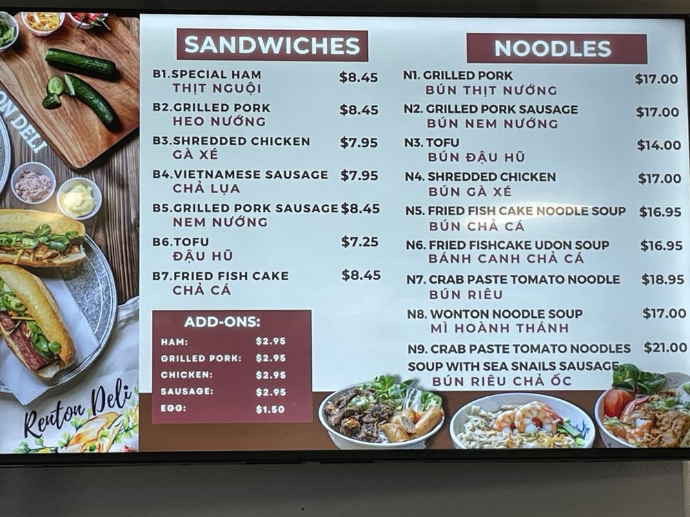 Renton Deli, located in Renton, WA, offers a delicious menu of Vietnamese deli sandwiches, milk teas, and noodles. Known for their fresh and flavorful ingredients, Renton Deli stands out for its Special Ham Sandwich, Grilled Pork Sandwich, and Vietnamese Sausage Sandwich. Customers rave about the quality of the sandwiches, with fresh bread, crisp vegetables, and plenty of meat. The menu may be limited, but each dish is carefully crafted to perfection. Pair your sandwich with a refreshing milk tea like Black Tea or Lychee Black Tea for a complete meal. With positive reviews from customers who praise the moist and flavorful pork and fresh veggies, Renton Deli is a must-visit spot for Vietnamese cuisine lovers. Enjoy a taste of Vietnam right in your neighborhood at Renton Deli.